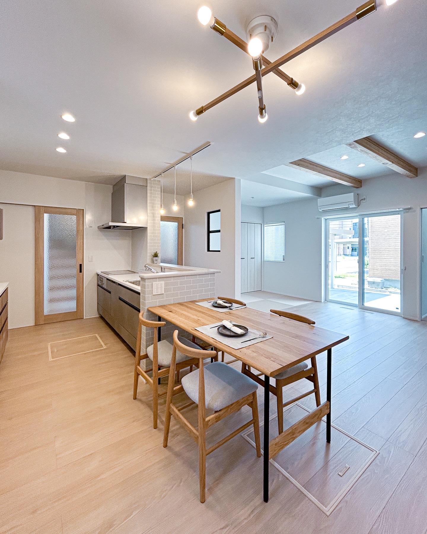 木の温もりを活かしたナチュラルモダンのデザインは、家族が自然と集まるLDKを実現。