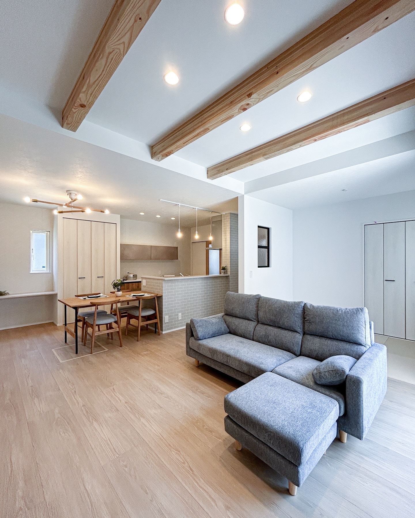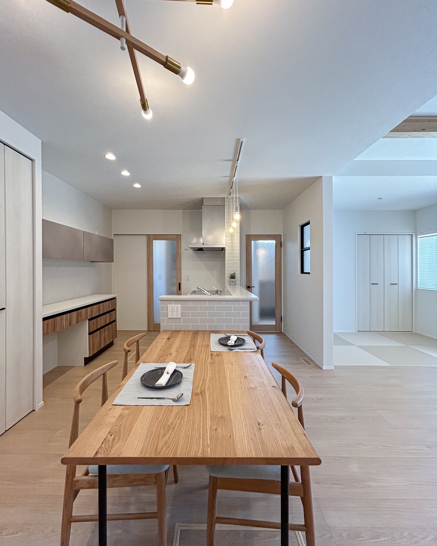 長岡市で注文住宅を請け負う工務店として、素材選びから間取り、採光計画まで細部にこだわり、心地よく暮らせる住空間をかたちにしました。